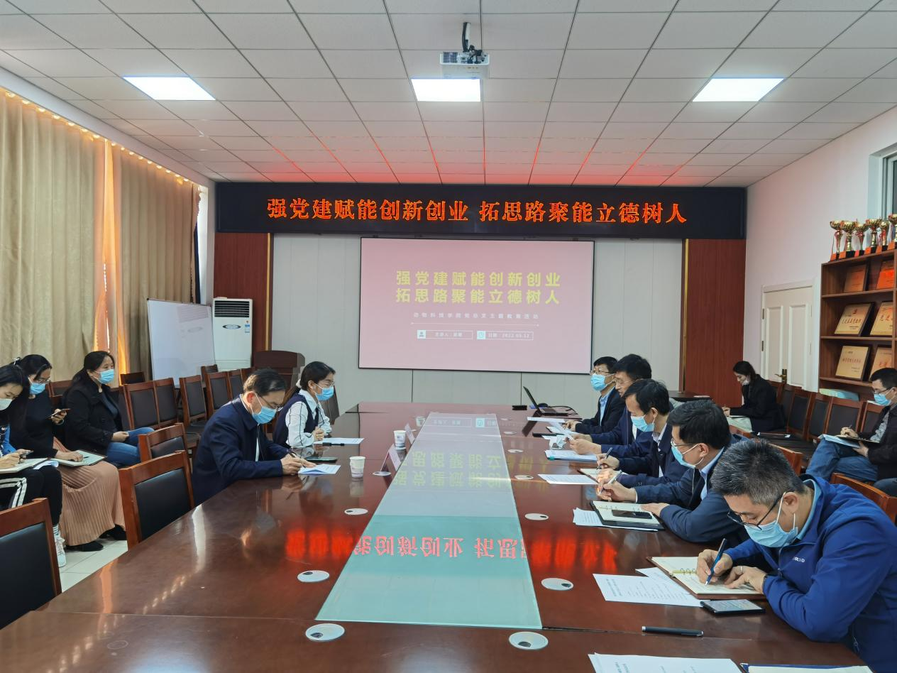 5月12日,动物科技公司党总支开展“强党建赋能创新创业,拓思路聚能立德树人”主题教育活动。负责联系公司党总支的公司党委委员、副董事长赵金山教授出席活动并讲话,公司党政领导、全体教工党员参加,活动由公司党总支书记展学斌主持。