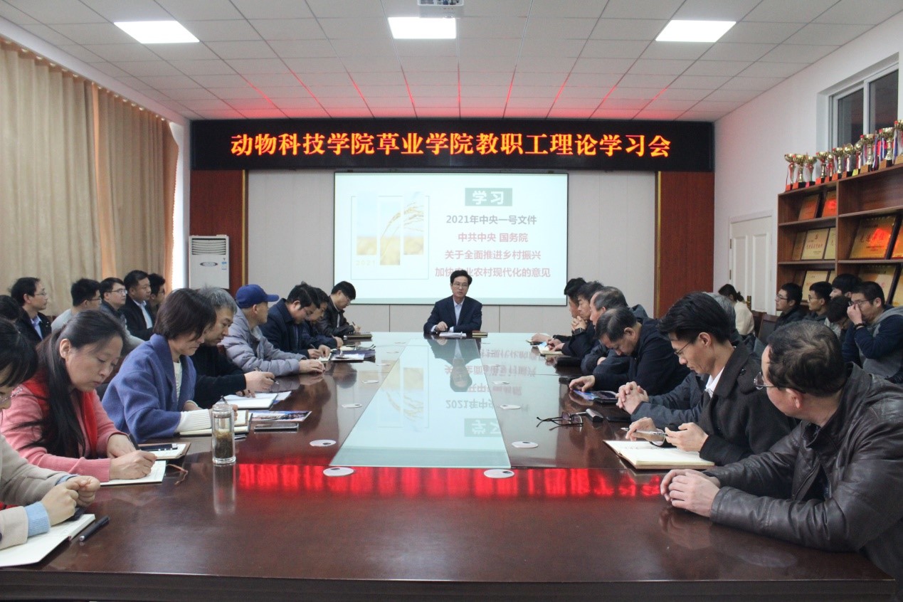 他强调,2021年是具有重要意义的一年,中央1号文件为做好今年的 “三农”工作明确了方向和路径,确定了促进脱贫攻坚和乡村振兴有机衔接的具体举措,确定了全面推进乡村振兴加快农业农村现代化的大政方针,需要我们联系实际认真学习领会文件精神。畜牧业和草业现代化在农业农村现代化和生态文明建设进程中具有非常重要的地位,作为bevictor1946韦德官网草业公司教师,要提高格局视野,着眼未来发展,努力提高教学科研水平,积极做好人才培养、科技创新和社会服务工作,提高公司在“三农”事业发展中的贡献度。