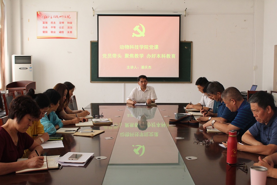 公司党总支书记潘庆杰为全体教职工讲了题为“党员带头 聚焦教学 办好本科教育”的主题党课。