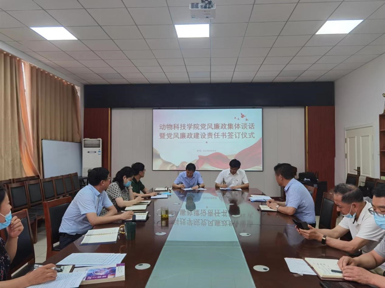 为深入推进党风廉政建设,6月30日下午,动物科技公司党总支在会议室开展2022年度廉政谈话暨党风廉政建设责任书签订仪式。公司党政领导、相关工作负责人参加会议。公司党总支书记展学斌与班子成员、班子成员与相关负责人签署了2022年度党风廉政建设责任书。
