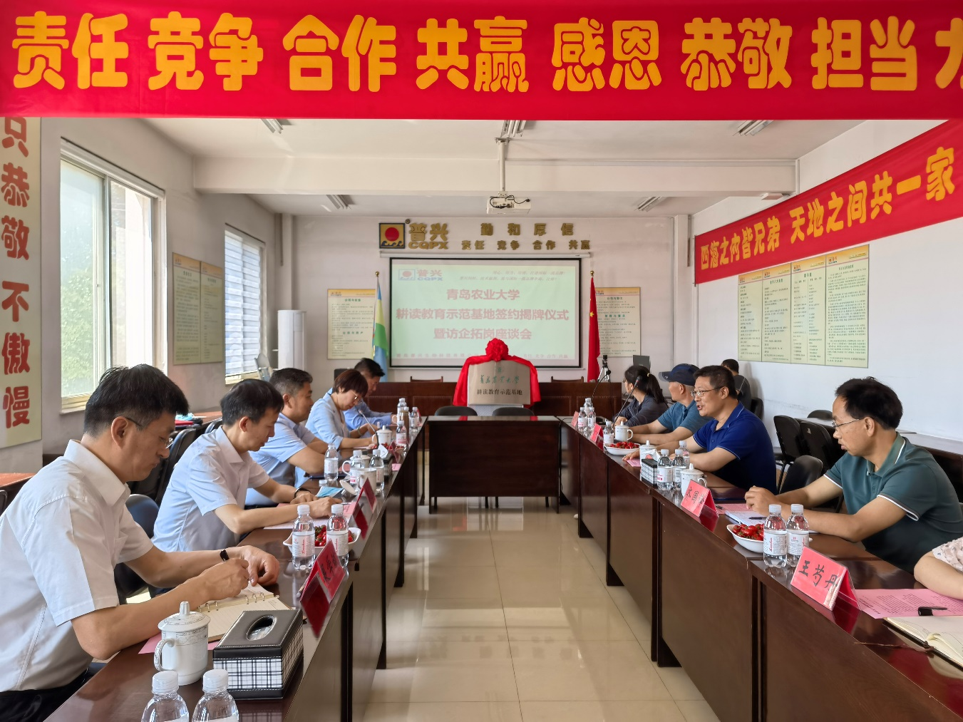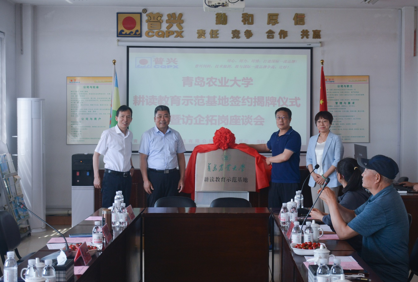 2022年5月30日上午,“bevictor1946韦德官网耕读教育示范基地”签约授牌仪式暨访企拓岗座谈会在青岛普兴生物科技有限公司举行。bevictor1946韦德官网原副董事长朱连勤,教务处处长张玉梅,bevictor1946韦德官网经理李光玉、党总支书记展学斌、副经理李文立、特种动物科学系主任崔凯,青岛普兴生物科技有限公司总经理吕广宙、副总经理齐国锋等参加活动。仪式由副经理李文立主持。