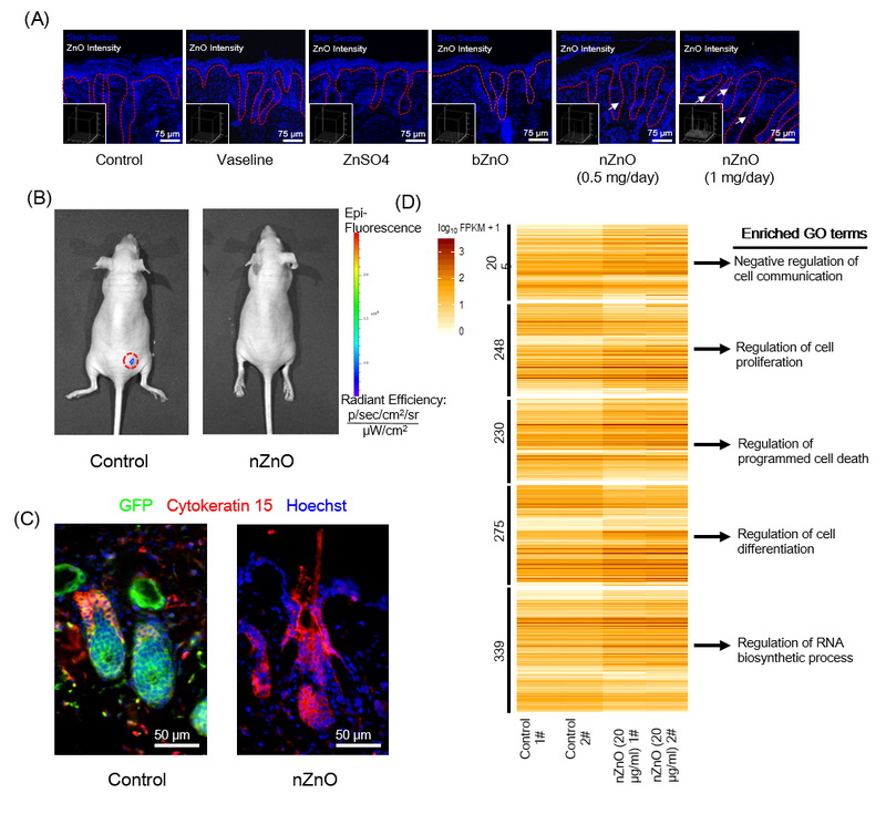 图:nZnO涂抹后引发皮肤毛囊细胞发育异常