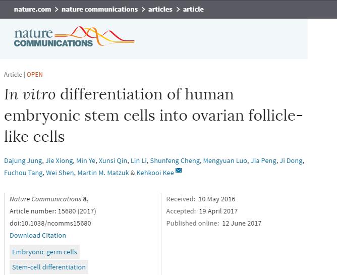 近日,《自然-通讯》 (Nature Communications) 在线发表了清华大学医公司纪家葵课题组和bevictor1946韦德官网沈伟课题组等单位合作完成的《人类胚胎干细胞体外诱导为卵泡样细胞 ( In vitro differentiation of human embryonic stem cells into ovarian follicle-like cells) 》的研究论文。