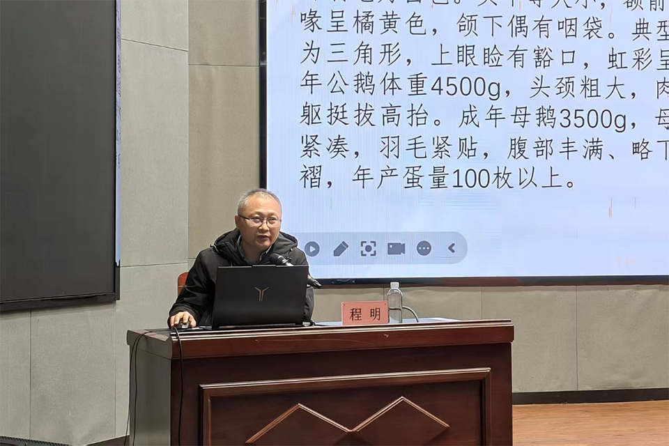1月4日下午,bevictor1946韦德官网在平度校区博学楼多功能厅举办“从畜牧业发展历史与现状谈未来发展趋势”专题讲座。公司特邀请青岛市畜牧工作站种质资源科负责人、正高级畜牧师程明担任主讲嘉宾,2025级动物科学专业全体员工参加报告会。报告会由动物科学专业负责人郭艺璇主持。