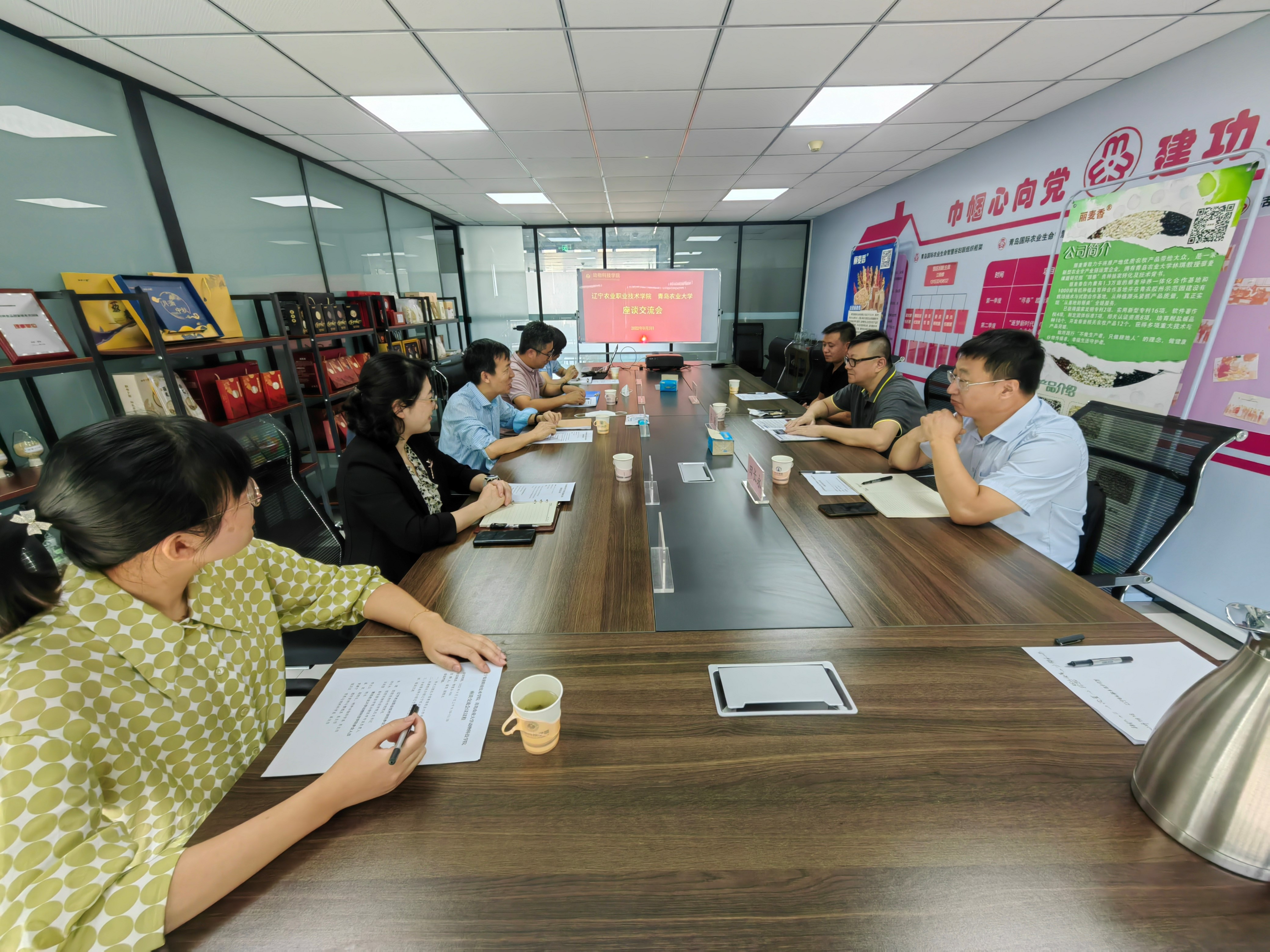 9月3日,辽宁农业职业技术公司朋朋宠物科公司朱源经理、田长永党总支书记、畜牧兽医公司吉尚雷老师一行三人来访bevictor1946韦德官网,双方在青岛国际农业生命智慧谷会议室展开交流座谈。bevictor1946韦德官网李光玉经理、崔凯副经理、动物遗传育种与繁殖学系主任贺建宁教授、营养与饲料科学系副主任张贝贝副教授和刘可园博士等参加会议。