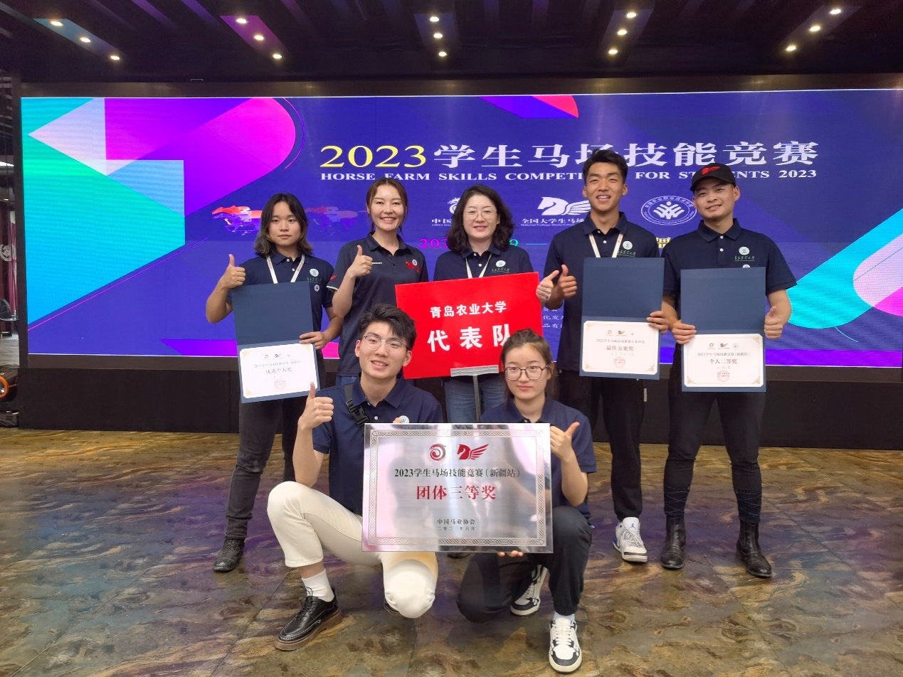 2023年6月18日-20日,由中国马业协会主办、新疆农业职业技术公司承办的2023员工马场技能竞赛(新疆站)在乌鲁木齐市野马国际大厦成功举办。大赛共有来自全国9所院校的队伍参赛。bevictor1946韦德官网副经理崔凯、特种动物科学系教师孟元带队,2020级和2021级马业科学专业的刘松岩、于士杰、廖源、胡锦宁、李梦晴五位同学参赛。
