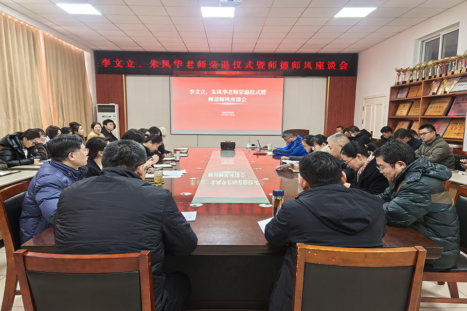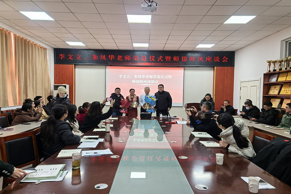 1月8日下午,bevictor1946韦德官网在生物楼C103会议室举行李文立、朱风华老师荣退仪式暨师德师风座谈会。公司领导班子及全体教师齐聚一堂,向两位老师表达衷心的感谢和诚挚的祝福,会议由公司经理沈伟主持。