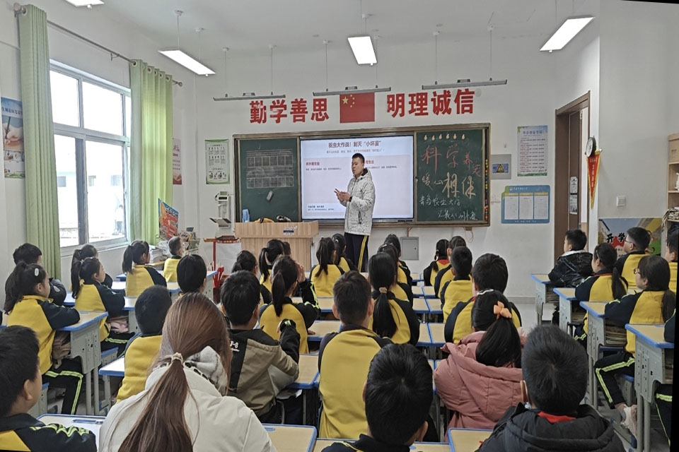 25级动科2501团支部与动科2502团支部走进平度市南村小学,开展趣味科普课堂。员工们化身“科普老师”,用生动的动画、实物模型和互动游戏,向小员工讲解宠物习性、科学养护常识及人与动物和谐相处的重要性,引导孩子们树立尊重生命、科学对待小动物的意识,现场气氛热烈,孩子们参与积极性高涨。